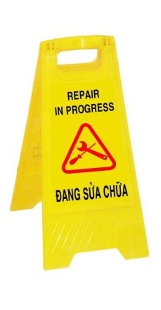 - Bảng nhựa cảnh báo (khu vực đang sửa chữa, chú ý sàn ướt, khu vực nguy hiểm, khu vực đang thi công)